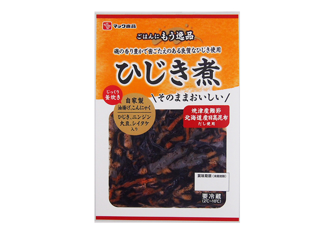 磯の香り豊かで歯ごたえのある良質なひじきを使用し、こだわりの焼津産鰹節と北海道産日高昆布だしでじっくり釜炊きしました。6種の具材(自家製油揚げ、自家製こんにゃく、ひじき、にんじん、大豆、しいたけ)が入っているので食べ応えがあります。そのままおいしく、まぜごはんやサラダにもご利用いただけます。