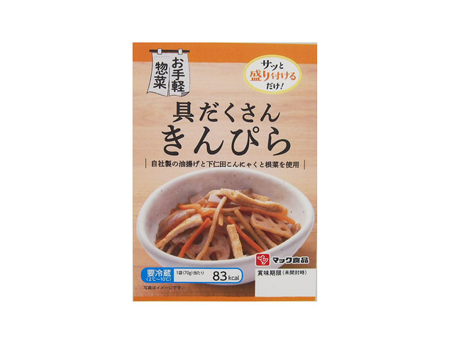 定番の総菜を手軽に使いやすい少量パックにしました。加熱調理済ですので冷蔵庫に常備して食べたい時にすぐ食べられて大変便利です。焼津産鰹節を使用し、5種の具材(自家製油揚げ、自家製こんにゃく、ごぼう、にんじん、れんこん)を入れた具だくさんきんぴらです。根菜の食感を残し、だしを煮含めじっくりと釜炊きしました。